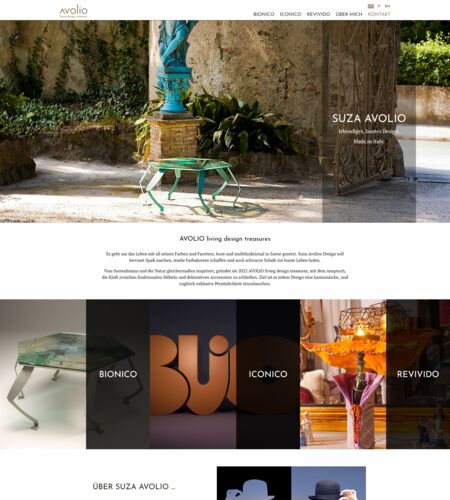 Suza Avolio entwirft ungewöhnliche Möbel und Accessoires. Die Aufgabe war eine Website für die Designerin zu schaffen, die ihrem küstlereichen Blick entspricht und gleichzeitig leicht zu bedienen ist. Gemeinsam entwarfen und verbesserten wir, bis die Seite Suzas Vorstellungen entsprach. Parallel zu ihren Kolelktionen wird die Website laufend weiter ausgebaut.